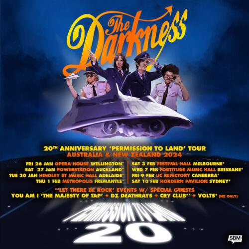 THE DARKNESS UNLEASHES A “LET THERE BE ROCK” SPECTACLE DOWN UNDER: CELEBRATING 20 YEARS OF PERMISSION TO LAND ACROSS SYDNEY, MELBOURNE & BRISBANE! Get ready and prepare to rock! Multi-platinum UK rock royalty The Darkness are returning to Australia in February 2024 to perform three very special “Let There Be Rock” events in Sydney, Brisbane, and Melbourne celebrating the band’s 20th anniversary Permission to Land. The classic debut [...]